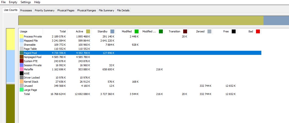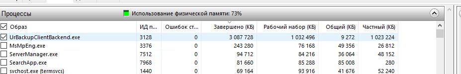 During this time, there is a constant CPU load of about 17%, but according to monitoring, there is no disk or network activity, no new debug log entries, and no attempt to create a shadow copy (VSS).
