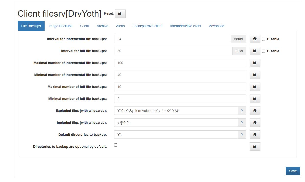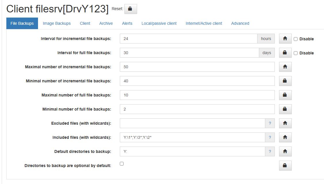 Since UrBackup can’t copy all files from my disk at once (the speed is extremely low — estimated backup time is more than 7 days), I decided to split the backup into several parts using multiple virtual clients.