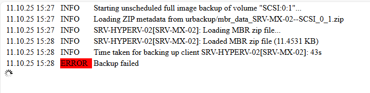 It still want´s to backup 0:1 again, but now it is hanging, no snapshot is created on the hyperv, the existing snapshot has been merged and deleted successfully:
